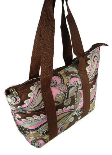 Womens Thermal Insulated Lunch Bag Tote (Brown & Pink Paisley-AKC-104) Review