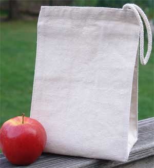 ECOBAGS® There's no waste here. This Lunch bag is made from recycled cotton fibers (scraps are collected and woven into new canvas material) A basic canvas lunch sack that's reusable and machine washable; nothing fancy about it. Just a basic lunch sack with an easy to use VELCRO® like closure.. Kid & grown up friendly. Why put up with all the "icky" that lives at the bottom of those nylon lunch sacks if you don't have to? Invite the kids to create their own bags with colorfast fabric markers.